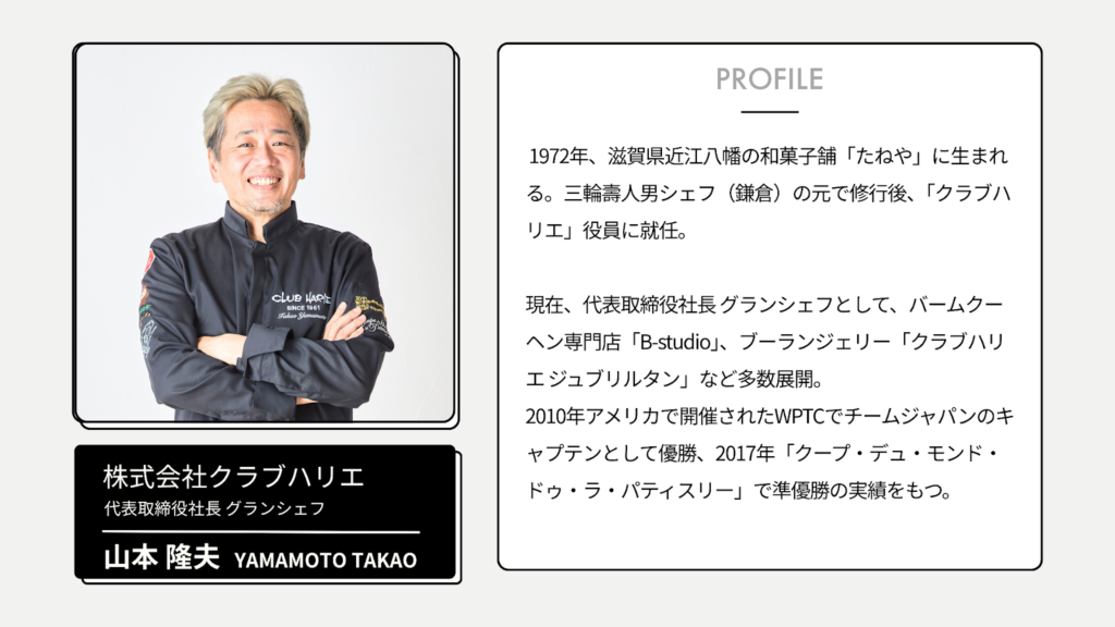 滋賀県・近江八幡で誕生した洋菓子ブランド「クラブハリエ」は、独自のファンコミュニティインスタライブ「クラブハリエクラブ」を通じて、お客さまと双方向のコミュニケーションを育んでいます。代表取締役社長・山本隆夫さん自らインスタライブに出演し、新商品や試作品の紹介、開発の裏側をリアルタイムで発信。ファンがブランドの“今”を一緒に体感できる場を築いてきました。