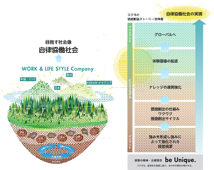 またコクヨ株式会社としては現在、アジア・ASEAN市場への海外展開とM&Aによる成長投資を進めているところです。ほかにも“挑戦する”という企業文化を基盤に「自律協働社会」の実現を目指しています。
