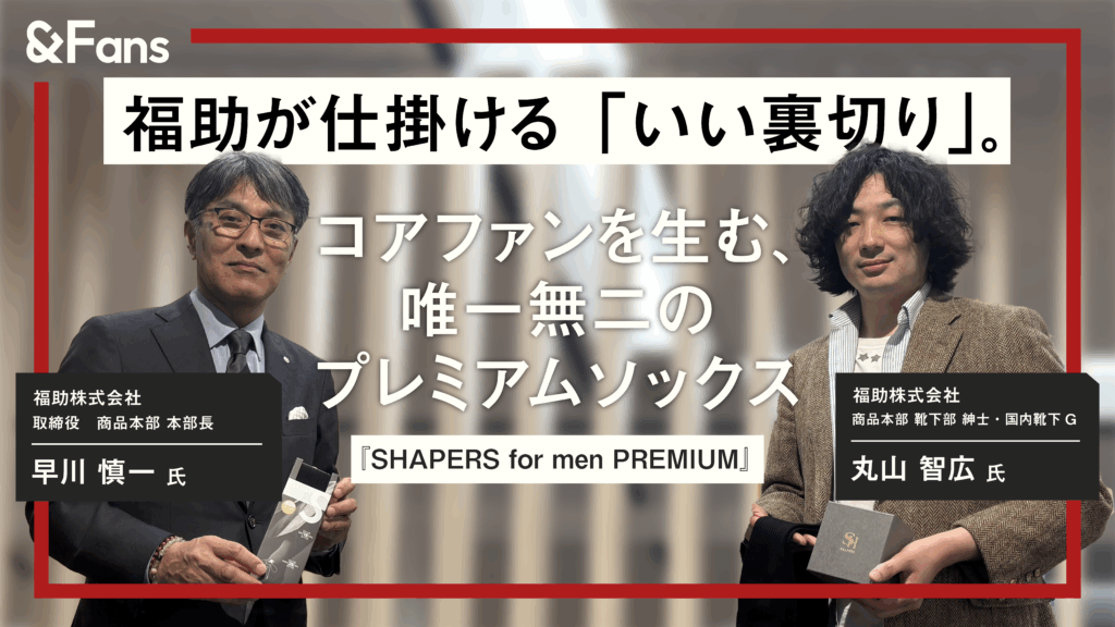 福助は靴下や肌着で知られる老舗ブランドです。男性用着圧ソックスの最上級モデルを、アップセル商品として開発し、顧客単価の向上を実現しています。