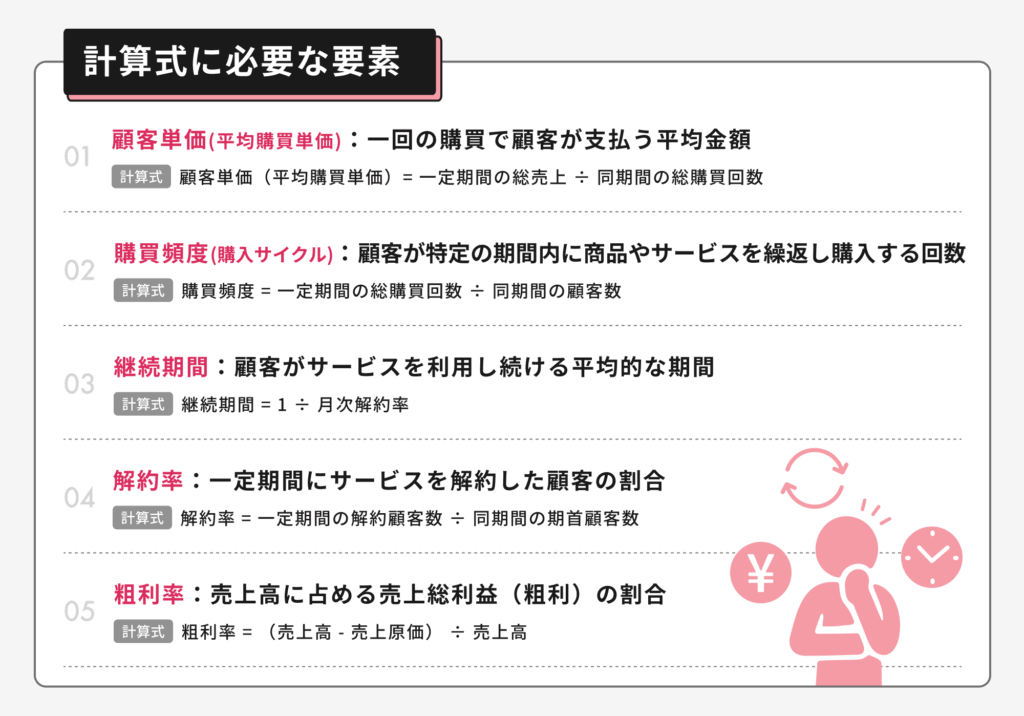 LTVを向上させるためには、計算式の構成要素に着目したアプローチが重要です。