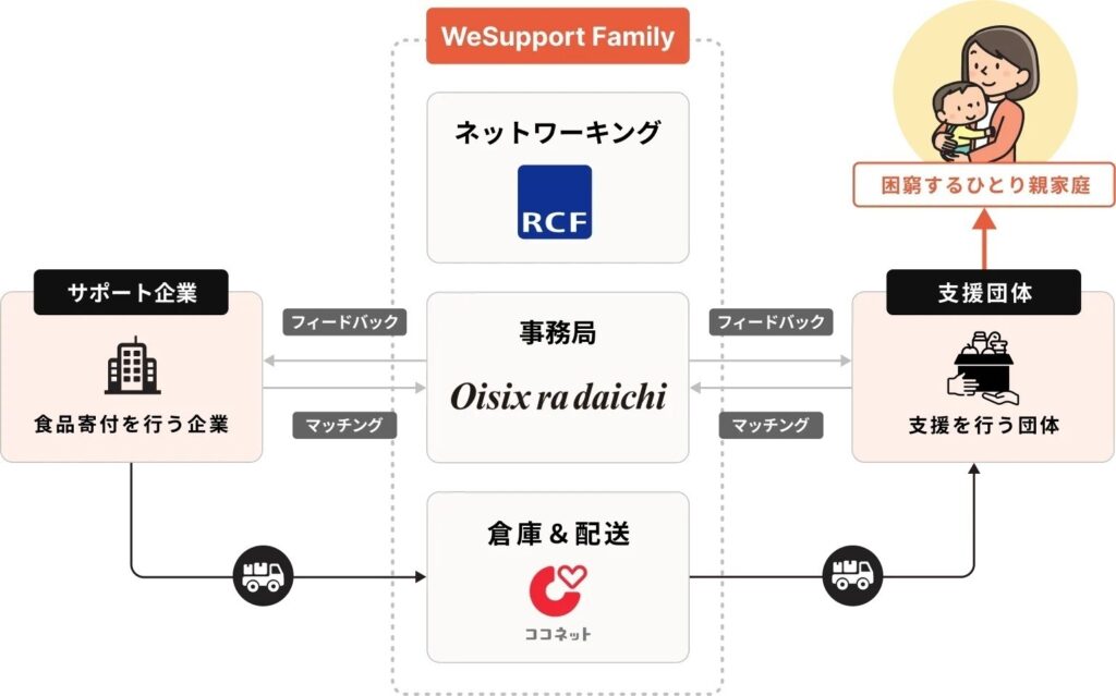 なかでも注目したいのが、2021年12月にスタートした「WeSupport Family」プロジェクト。困窮するひとり親世帯に食品を届ける活動であり、支援を受ける家庭だけでなく、支援する企業や団体からも大きな支持を集めています。