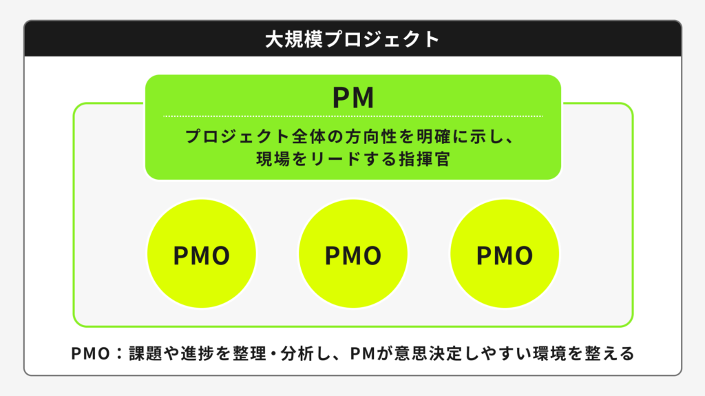 一方でPMOは、PMが意思決定しやすい環境を整える役割を担います。