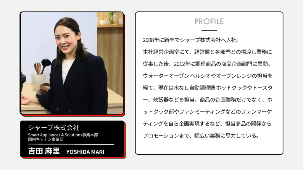 今回は、総合電機メーカー「シャープ株式会社」のSmart Appliances & Solutions事業本部 国内キッチン事業部・吉田さんに、同社が運営するユーザーコミュニティ「ホットクック部」についてお話を伺いました。
